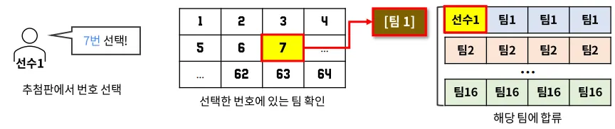 번호 안에는 배정될 팀이 정해져 있으며, 해당 팀으로 속하게 됩니다.